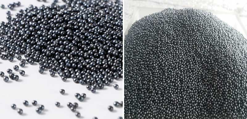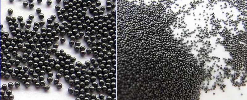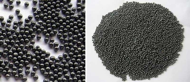 鑄鋼丸是由高質(zhì)量的鋼碎料制成的,首先將其溶化,然后用高壓水噴射式使熔融的鋼水形成小球狀。形成的丸體再次加熱以凈化勻質(zhì),然后進行淬火處理。淬火后的丸體在熔爐內(nèi)進行烘干并重新加熱回火以達到適當(dāng)?shù)挠捕?,回火處理的鋼丸通過機械篩網(wǎng)被分選成符合SAE標(biāo)準(zhǔn)的11個等級以用于拋丸設(shè)備。不同粒度和硬度的產(chǎn)品用于不同的工藝,如表面強化等。